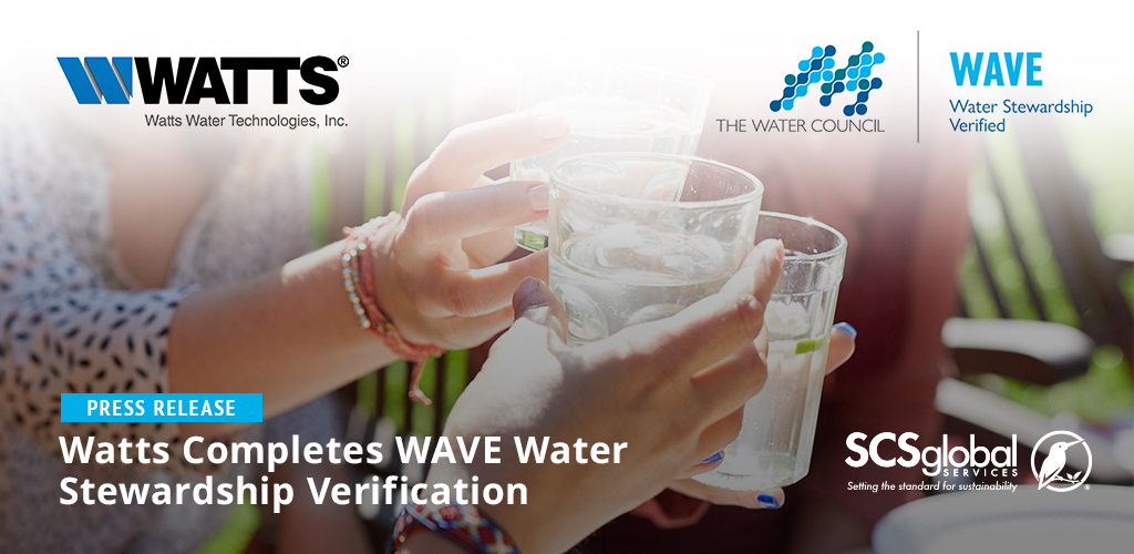 Watts’ water stewardship work was independently verified by SCS Global Services, an international leader in third-party certification of sustainability claims, and it can now use the WAVE seal on corporate materials.